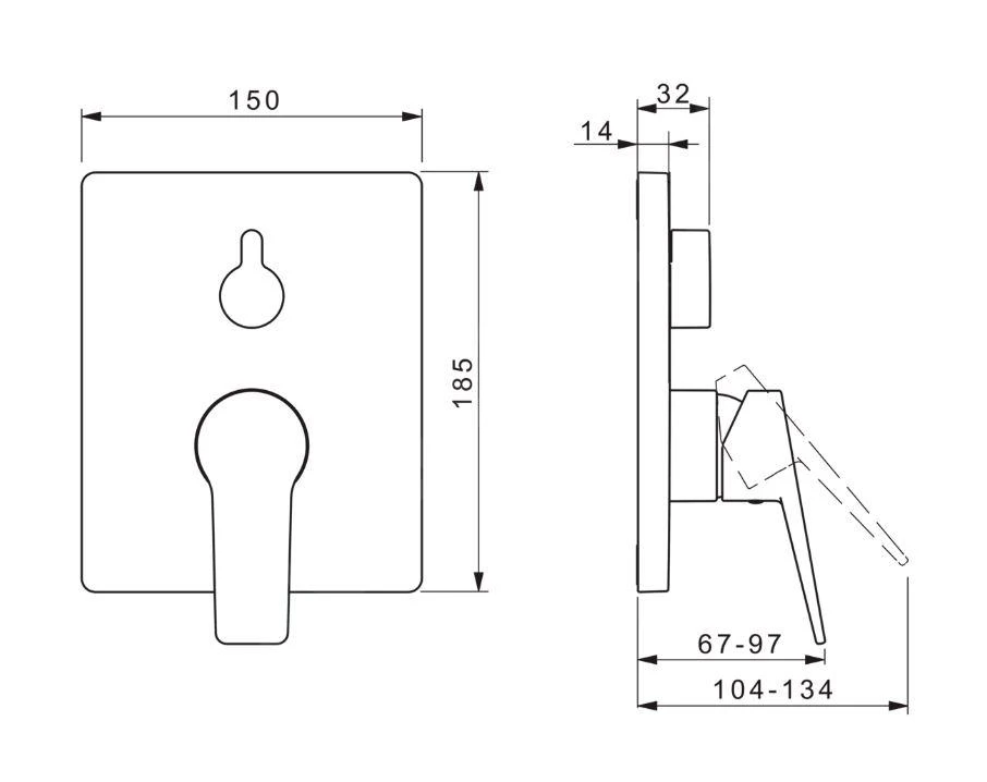 - vierkant schroefloze afdekrozet, afmetingen 150 x 185 mm