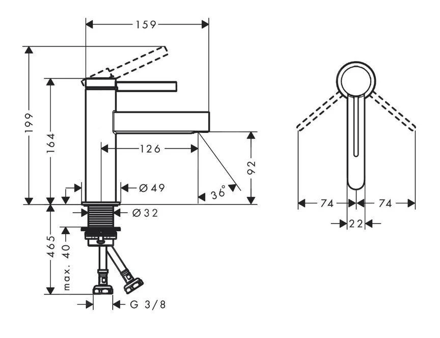 - lengte uitloop: 126 mm