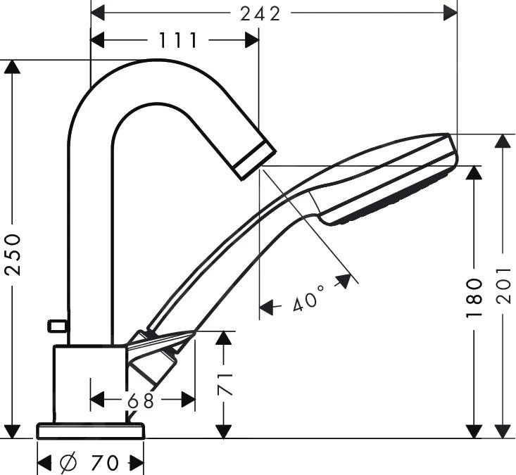 - de levering bevat: 3-gats badrandcombinatie, handdouche, doucheslang, douchehouder