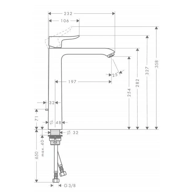 De Metris 260 1-greeps wastafelkraan maakt deel uit van een exclusieve designlijn van het merk Hansgrohe met royale oppervlakken en een smal uitlopend kraanlichaam. De kraan is speciaal ontworpen voor vrijstaande wastafels. Er zijn bijpassende Metris Classic kranen verkrijgbaar voor bidet, bad en douche, waardoor u een harmonisch geheel kunt creëren.