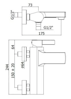 Installatie op inbouwdeel voor vrijstaande badkraan, die is niet meegeleverd en moet apart worden besteld. (zie gerelateerde artikelen)