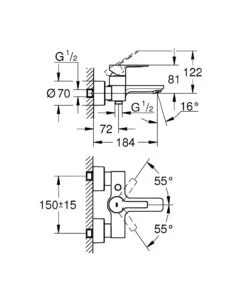 - doorstroming bij 0,3 MPa: 20 l/min
