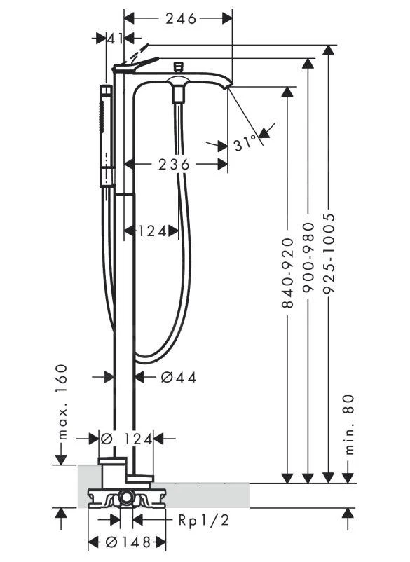 Vivenis vrijstaande badkraan, zonder basisgarnituur
