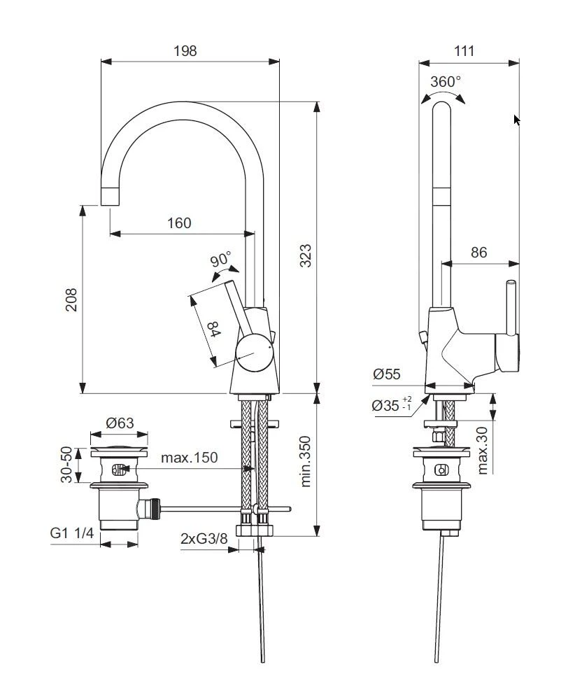 - met draaibare uitloop