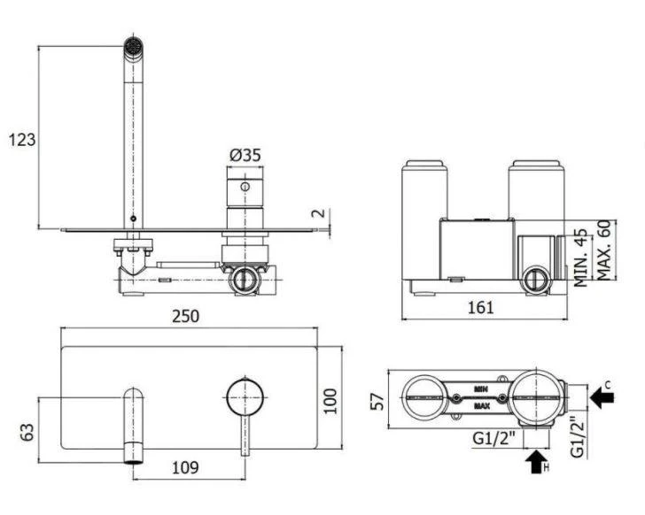 - afmetingen afdekplaat 250 x 100 mm