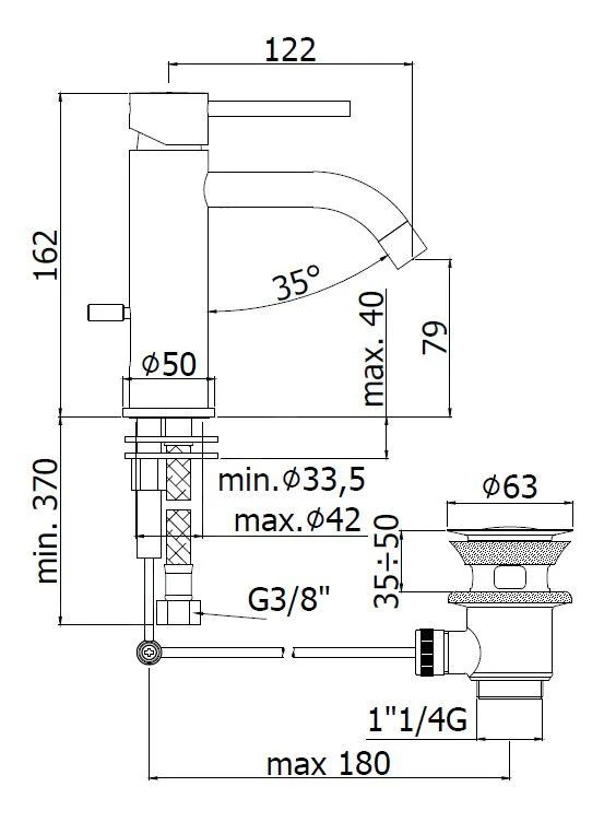 - set van 2 roestvrijstalen slangen G 3/8´´ voor aansluiting op hoekstopkranen met een lengte van 400 mm