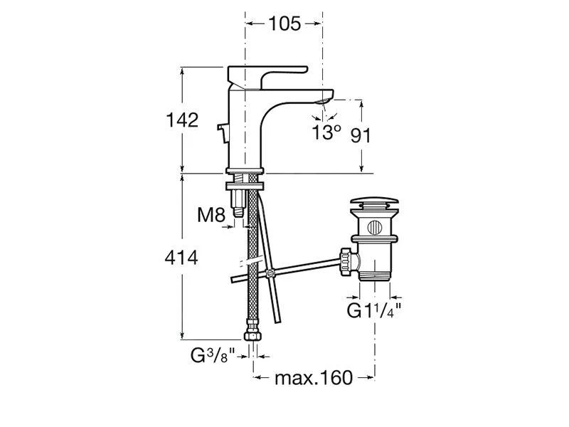 - Aansluiting: flexi 3/8″
