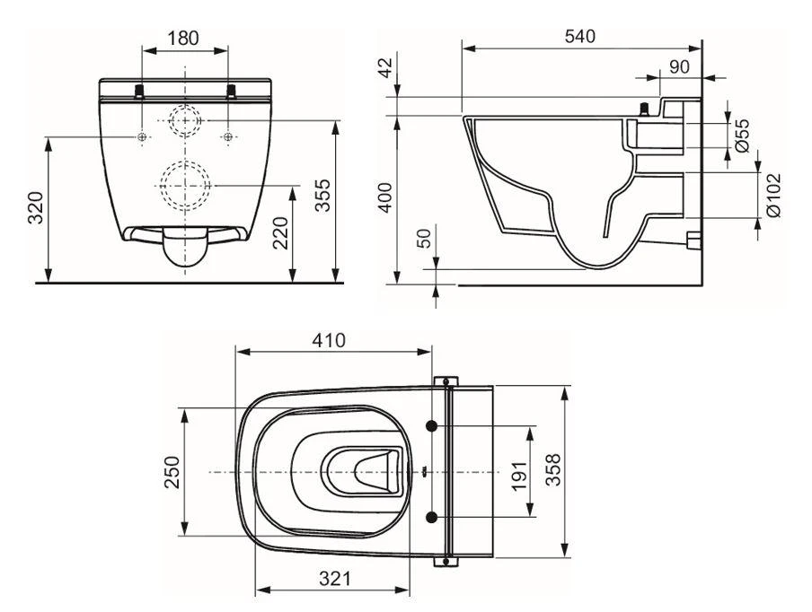 - randloze spoeling Rimless met bescherming tegen opspattend water uit de toiletpot