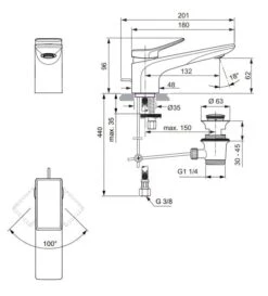 Ideal Standard CeraLine – Wastafelkraan Met Afvoer En Draaibare Uitloop, Chroom BC195AA