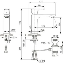Ideal Standard Connect Air – Wastafelkraan Slim Met Draaibare Uitloop En Waste, Chroom A7020AA