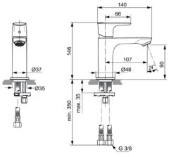 Ideal Standard Connect Air – Piccolo Slim Wastafelkraan, BlueStart, Silver Storm A7019GN